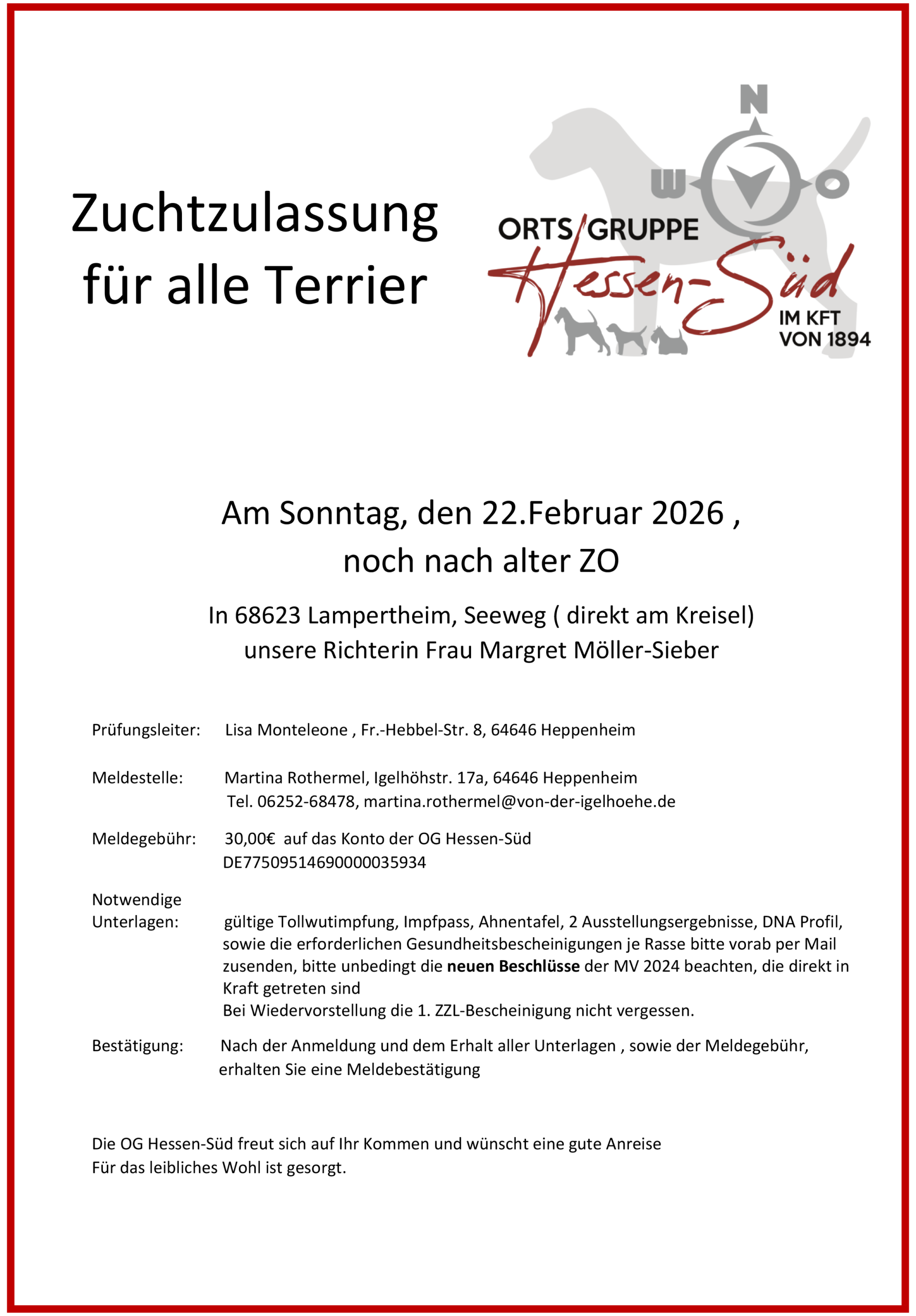 Herzlich Willkommen auf der Homepage der Ortsgruppe Hessen Süd im Klub für Terrier e.V.